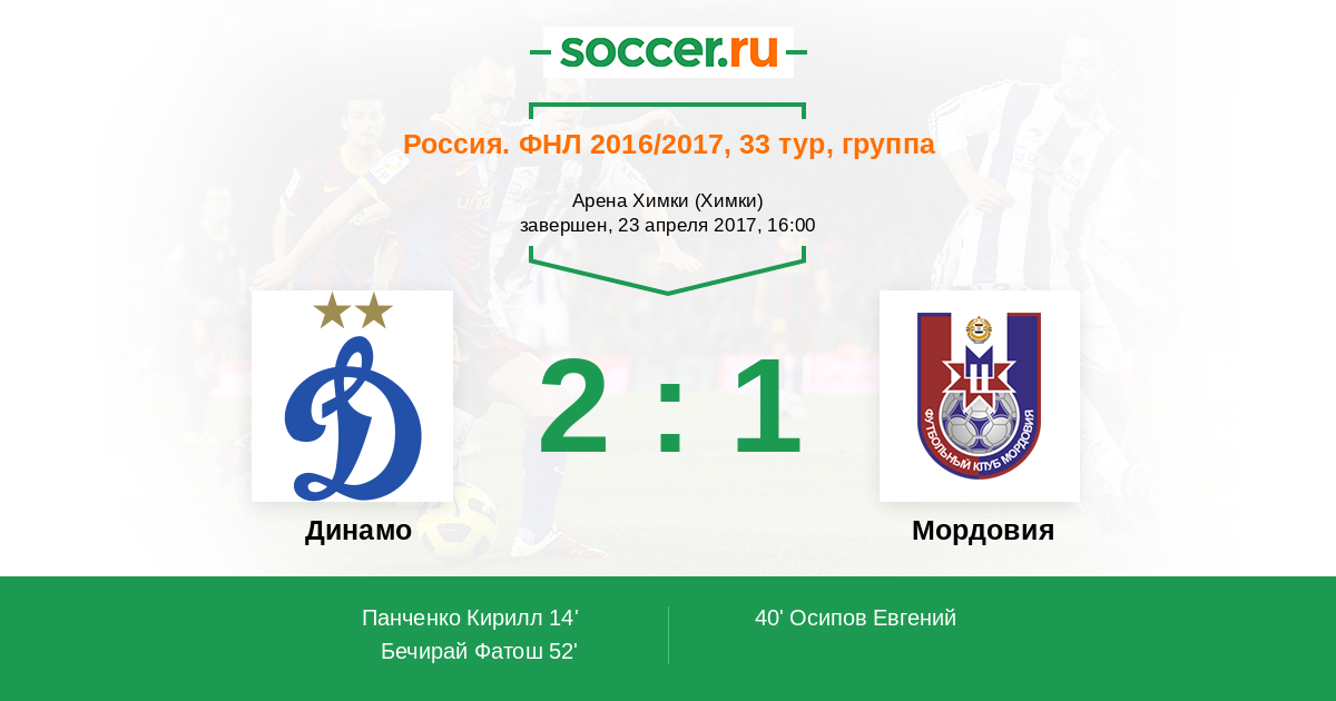 Протокол матча Динамо против Мордовия