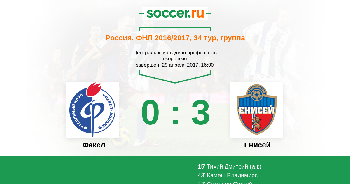 Протокол матча Факел против Енисей