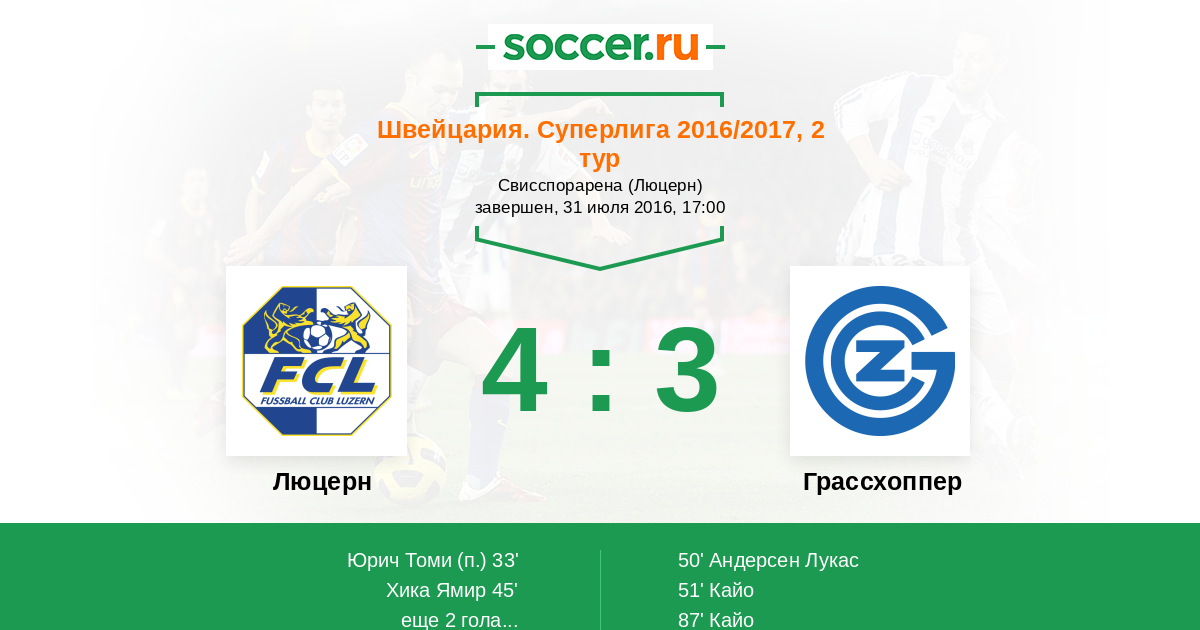 Протокол матча Люцерн против Грассхоппер