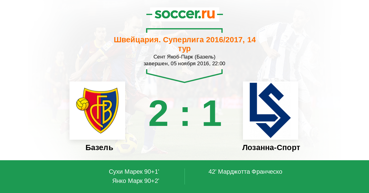 Протокол матча Базель против Лозанна-Спорт