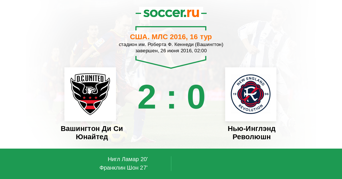 Протокол матча Вашингтон Ди Си Юнайтед против Нью-Инглэнд Революшн
