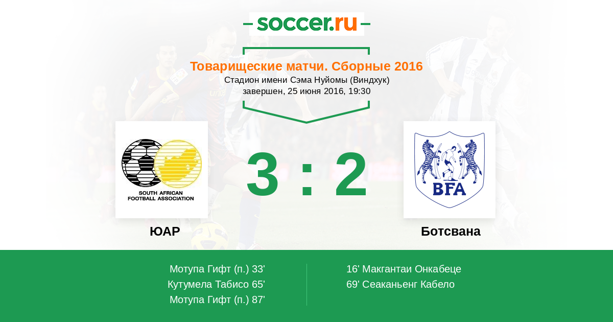 Протокол матча ЮАР против Ботсвана