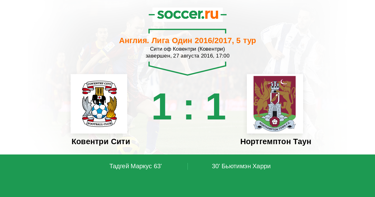 Протокол матча Ковентри Сити против Нортгемптон Таун