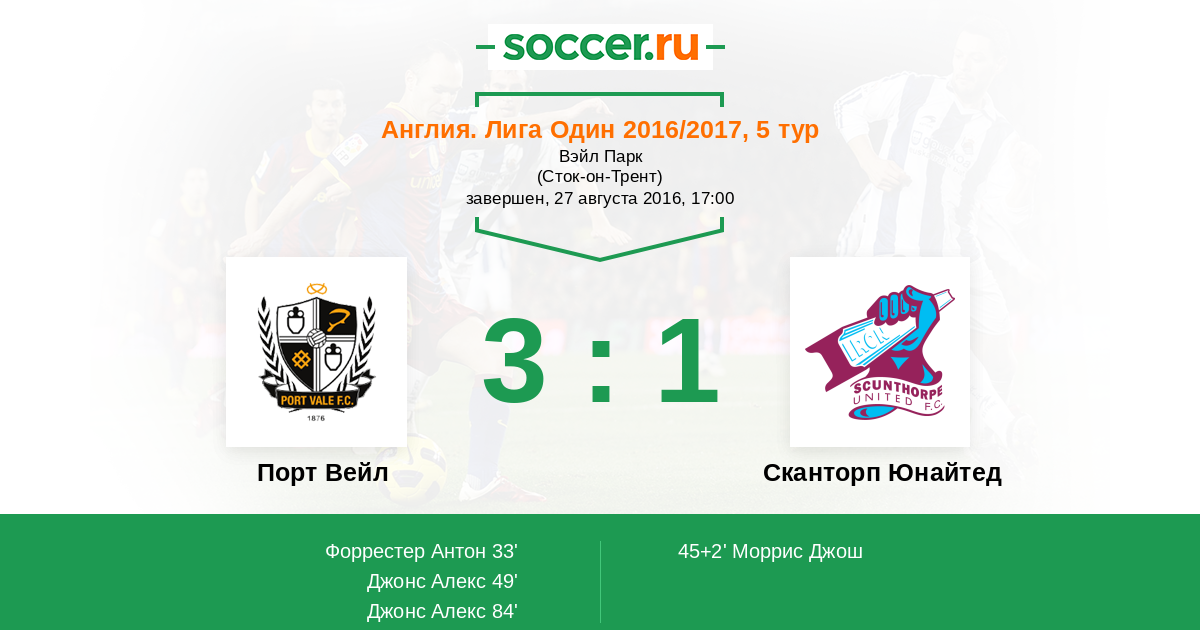 Протокол матча Порт Вейл против Сканторп Юнайтед