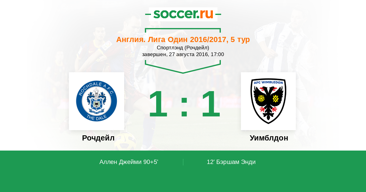 Протокол матча Рочдейл против Уимблдон