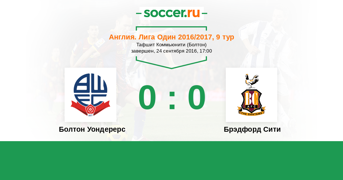 Протокол матча Болтон Уондерерс против Брэдфорд Сити