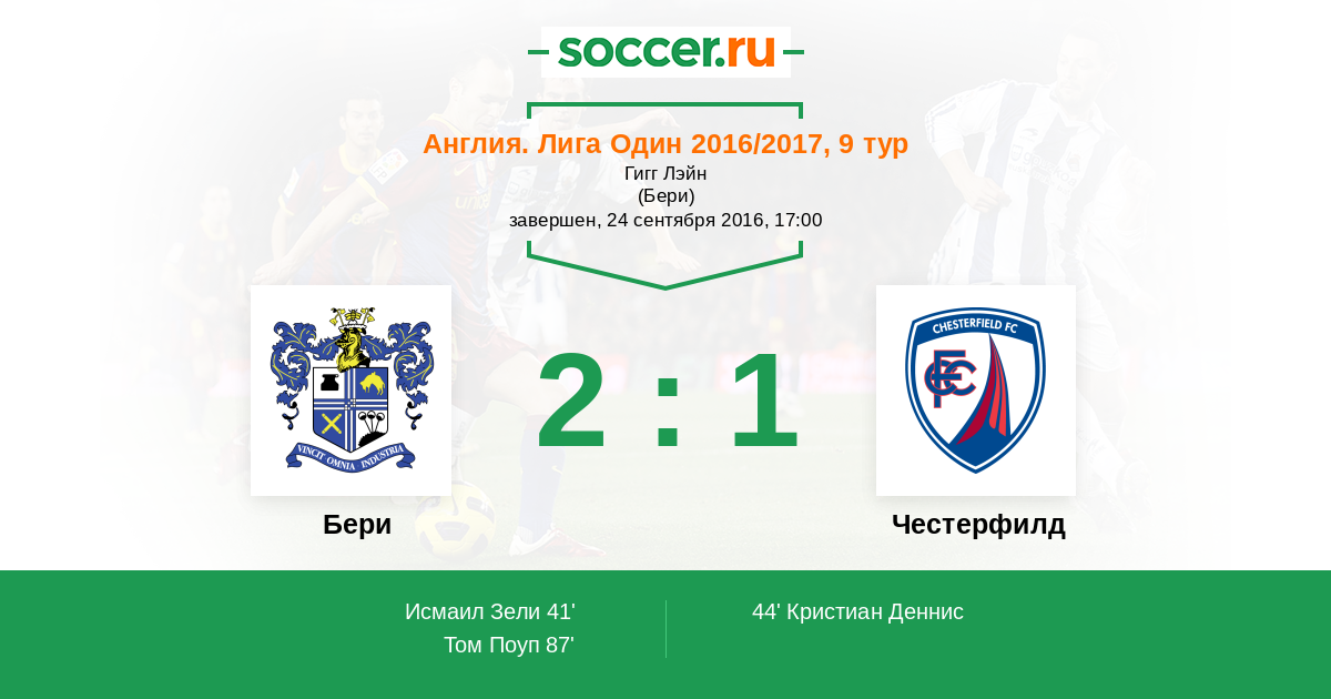 Протокол матча Бери против Честерфилд