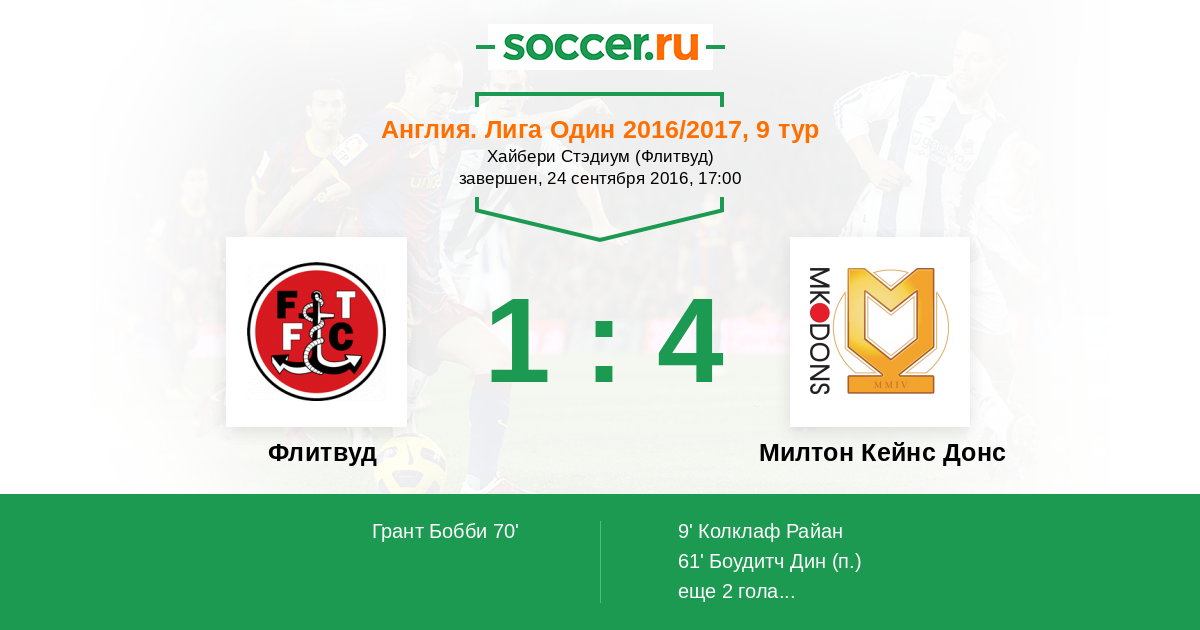 Протокол матча Флитвуд против Милтон Кейнс Донс