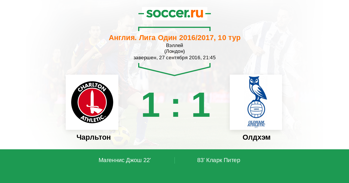 Протокол матча Чарльтон против Олдхэм