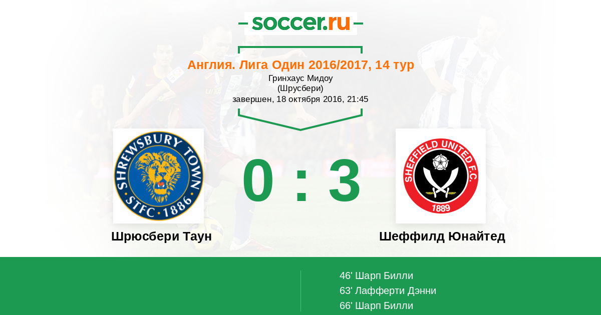 Протокол матча Шрюсбери Таун против Шеффилд Юнайтед
