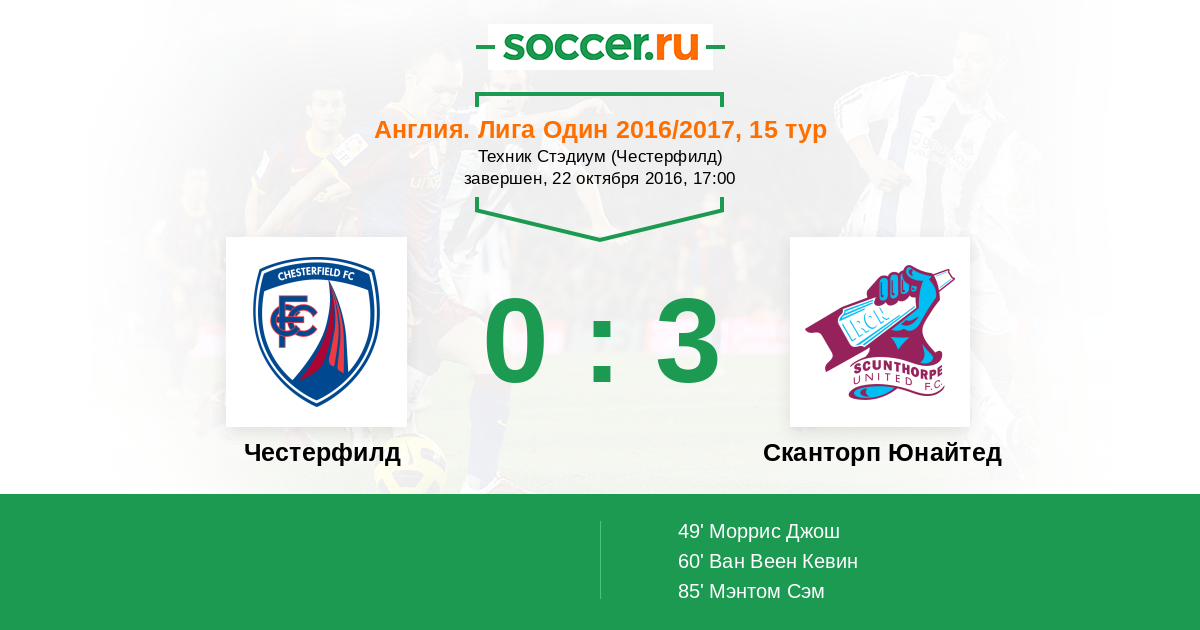 Протокол матча Честерфилд против Сканторп Юнайтед