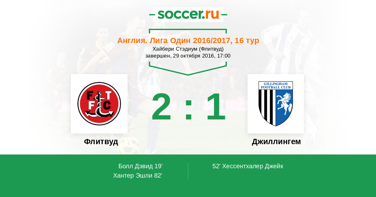 Протокол матча Флитвуд против Джиллингем