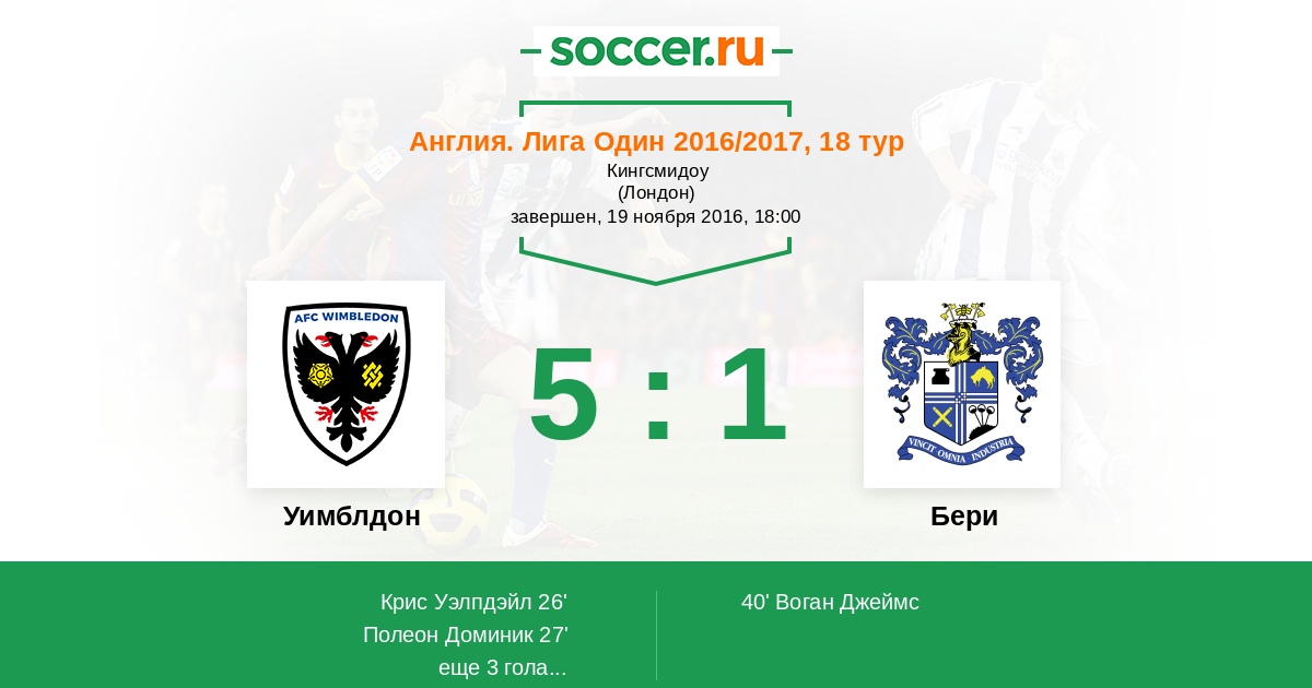 Протокол матча Уимблдон против Бери