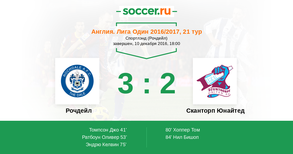 Протокол матча Рочдейл против Сканторп Юнайтед