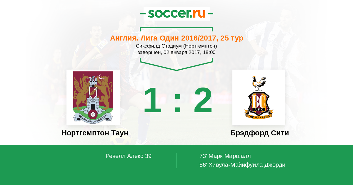 Протокол матча Нортгемптон Таун против Брэдфорд Сити
