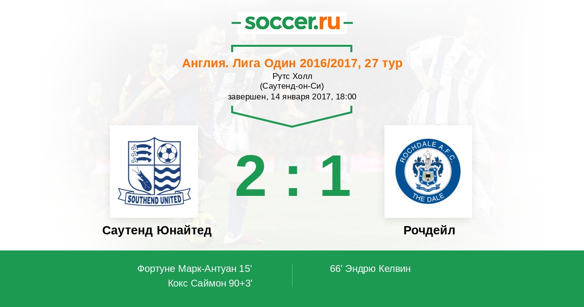 Протокол матча Саутенд Юнайтед против Рочдейл