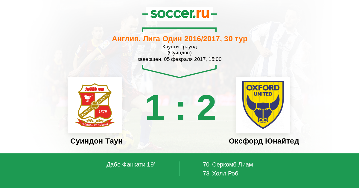 Протокол матча Суиндон Таун против Оксфорд Юнайтед