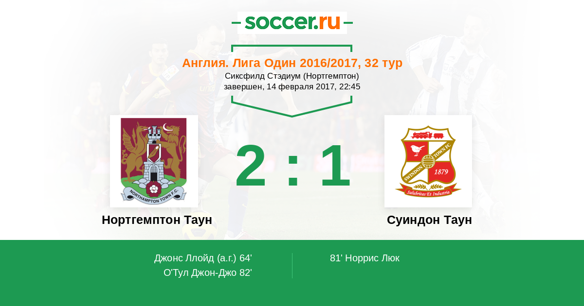 Протокол матча Нортгемптон Таун против Суиндон Таун