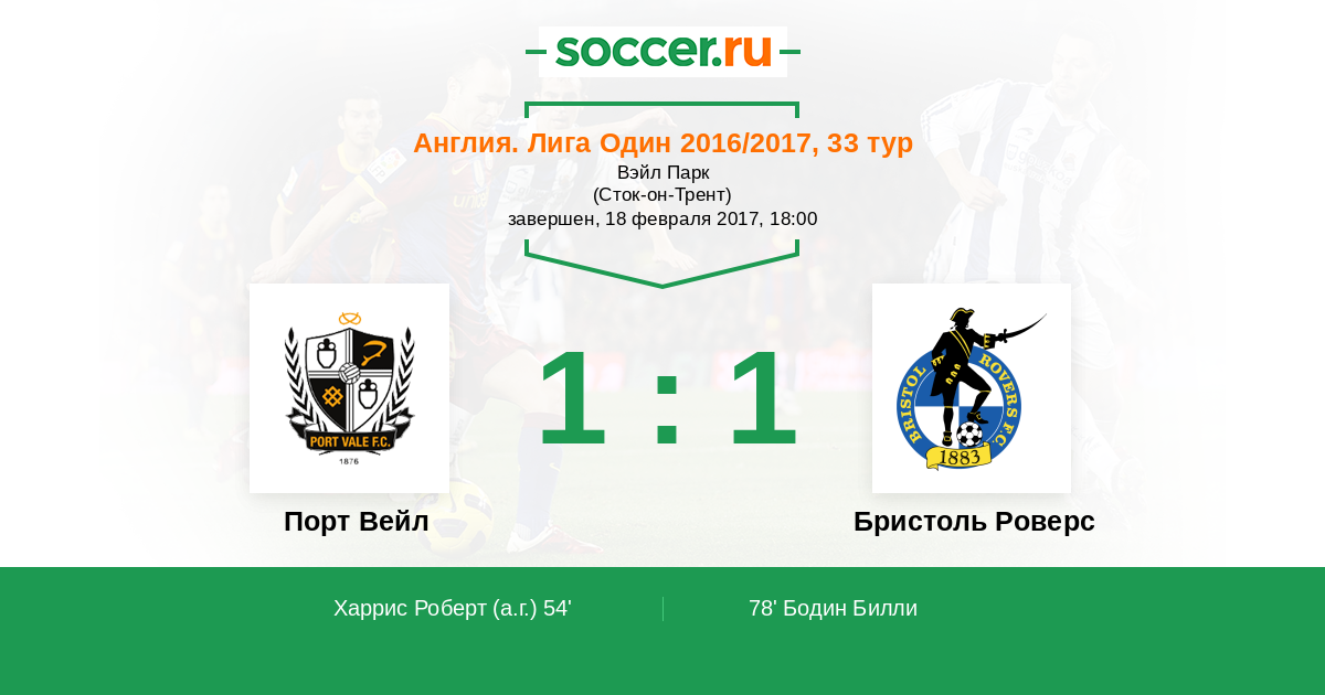 Протокол матча Порт Вейл против Бристоль Роверс
