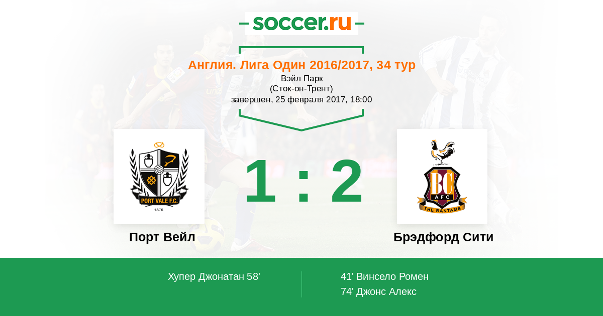 Протокол матча Порт Вейл против Брэдфорд Сити