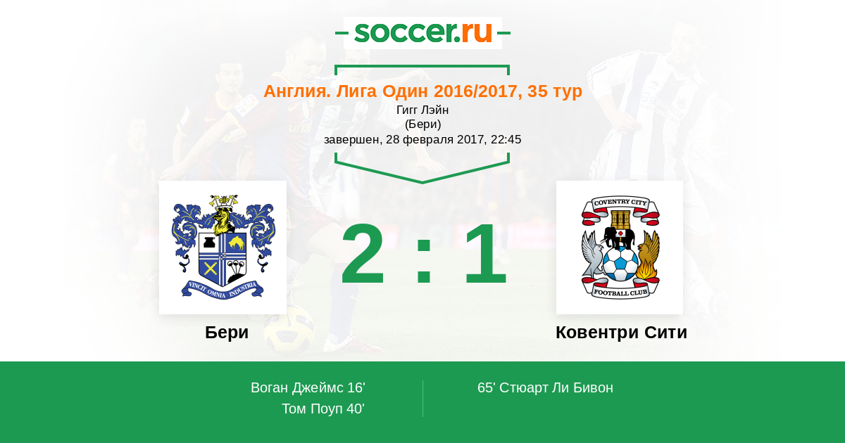 65' (2:1) Стюарт Ли Бивон (16) (Хейнс Райан (24))