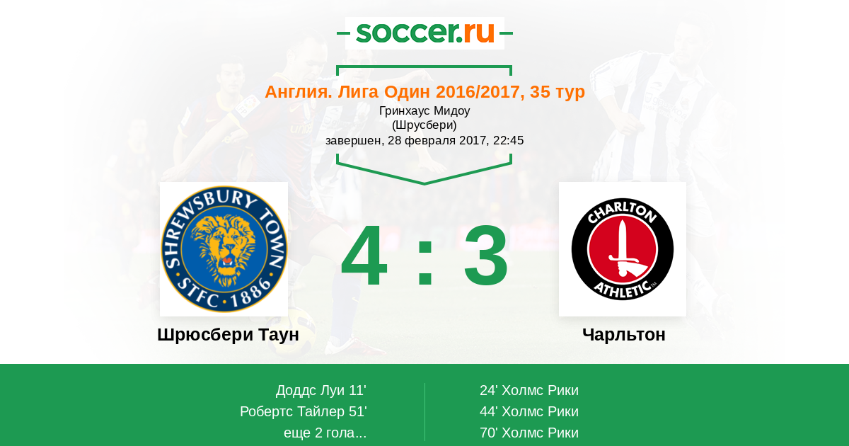 Протокол матча Шрюсбери Таун против Чарльтон