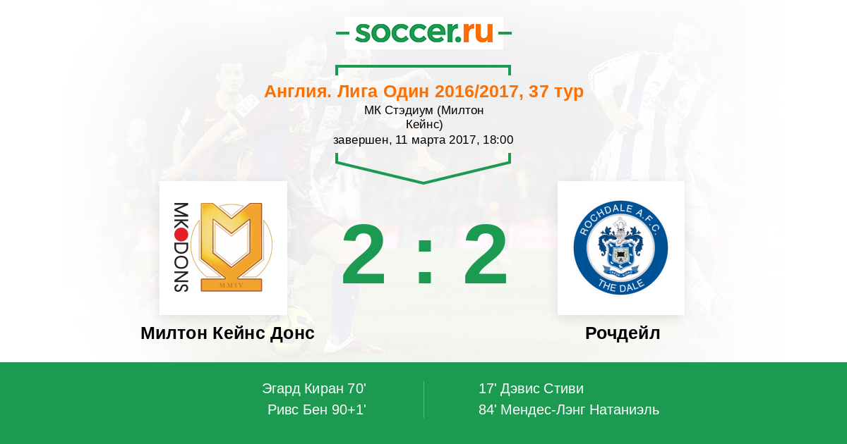 Протокол матча Милтон Кейнс Донс против Рочдейл