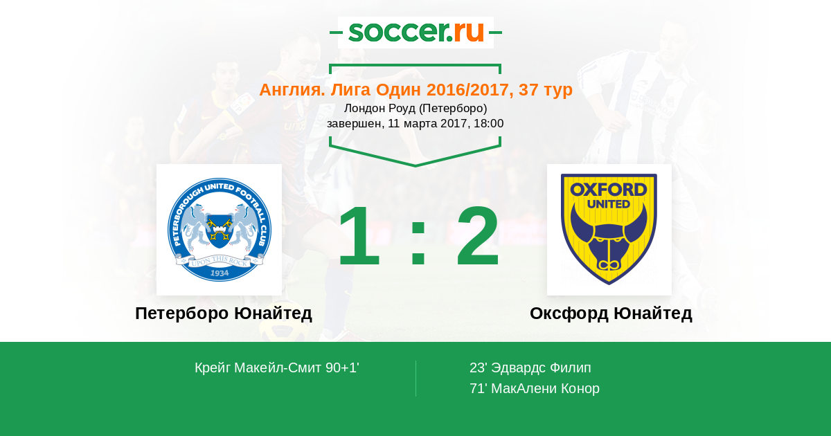 Протокол матча Петерборо Юнайтед против Оксфорд Юнайтед