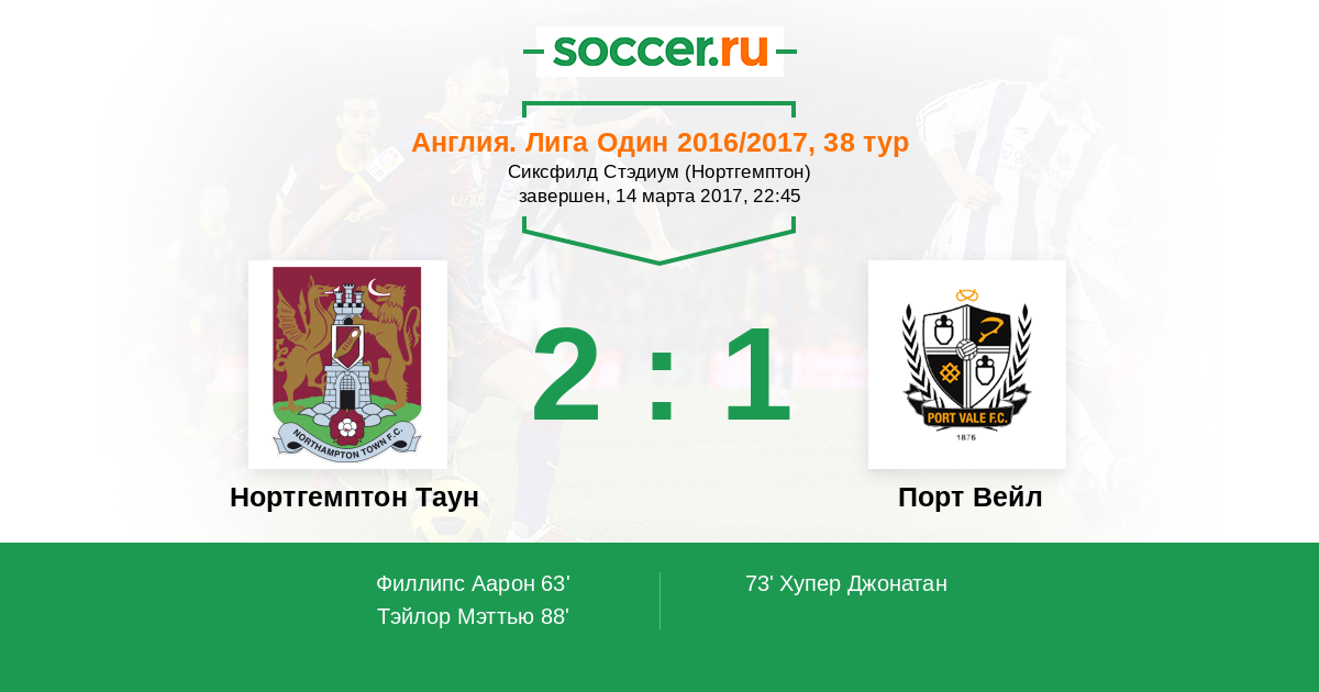 Протокол матча Нортгемптон Таун против Порт Вейл