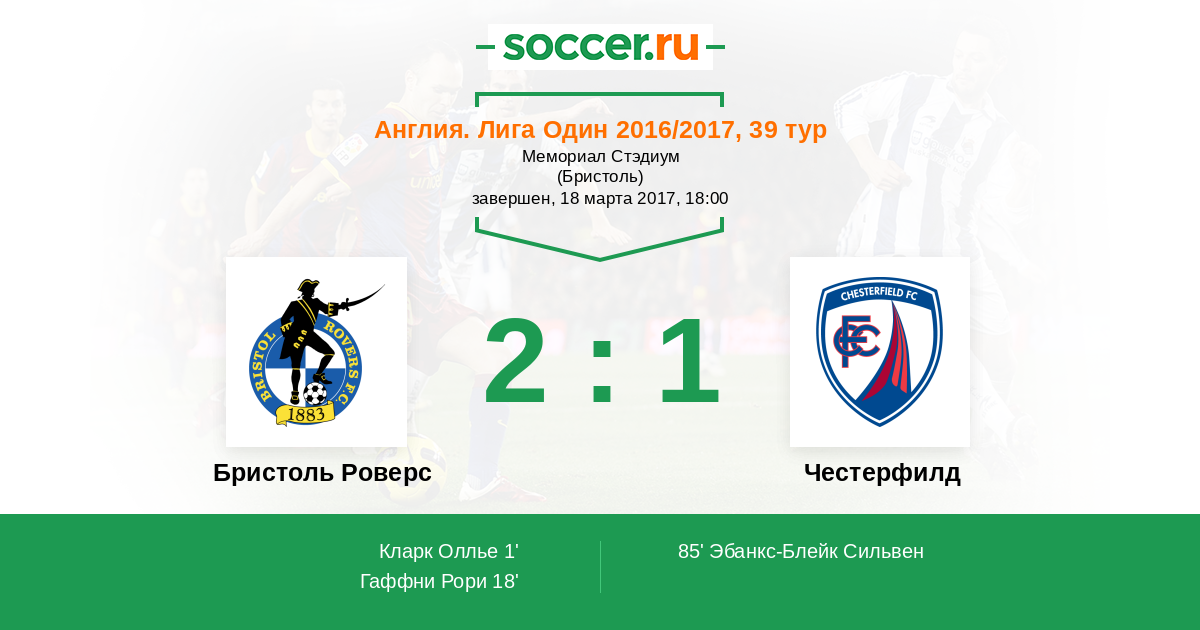 Протокол матча Бристоль Роверс против Честерфилд