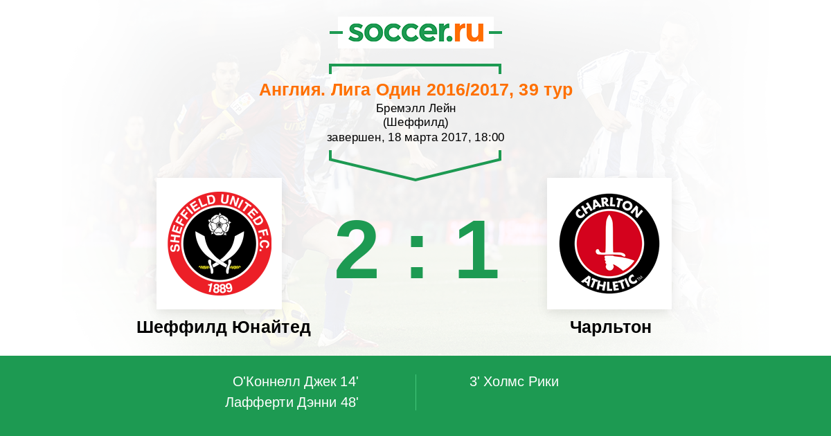 Протокол матча Шеффилд Юнайтед против Чарльтон