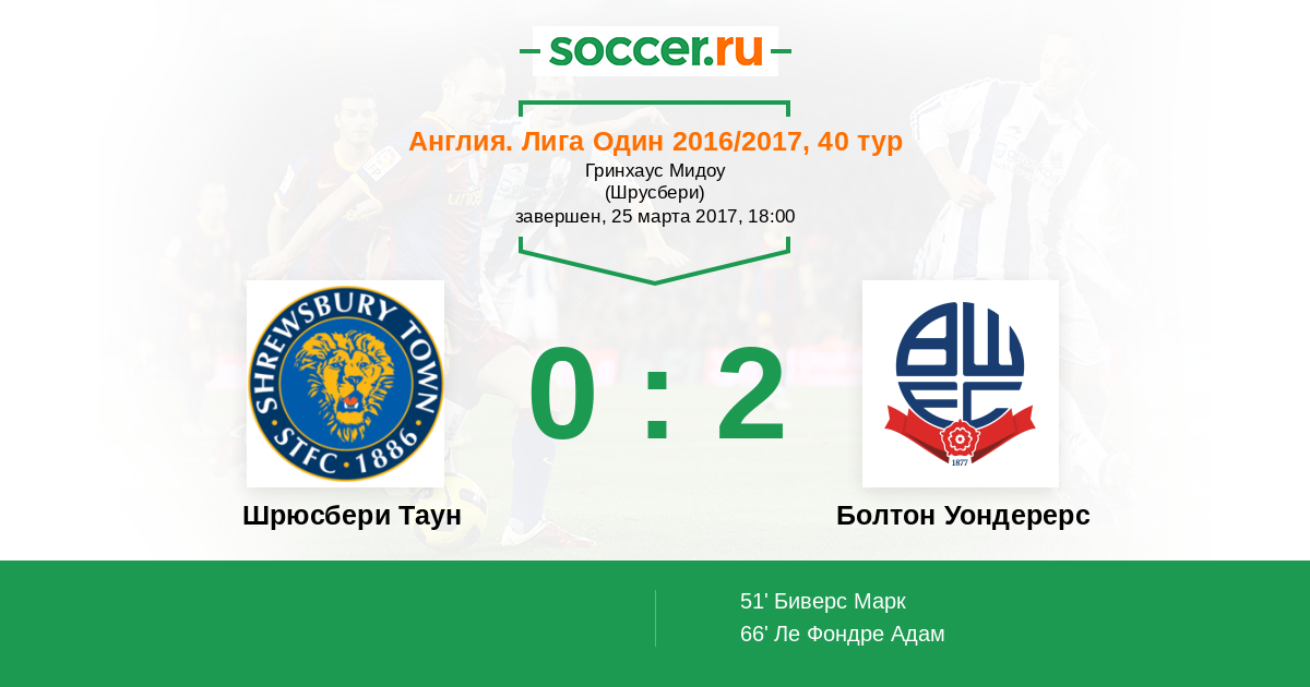 Протокол матча Шрюсбери Таун против Болтон Уондерерс