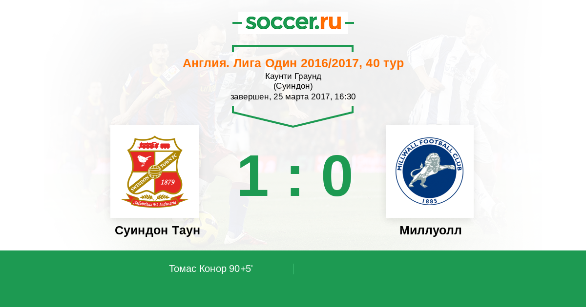 Протокол матча Суиндон Таун против Миллуолл