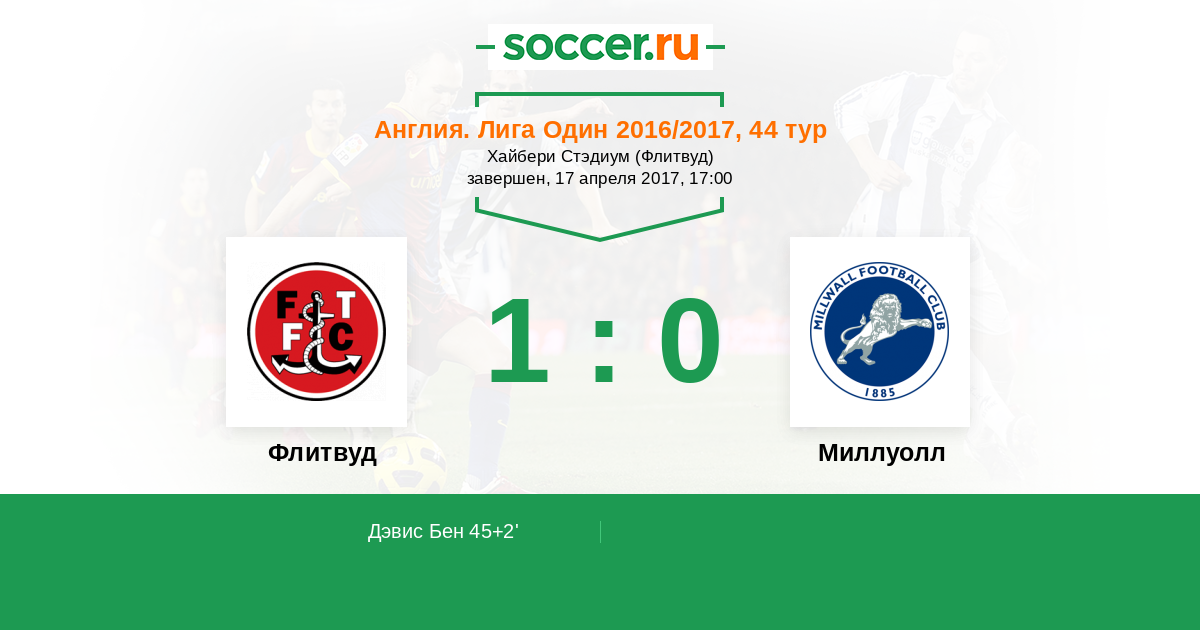 45+2' (1:0) Дэвис Бен (37) (Глендон Джордж (18))