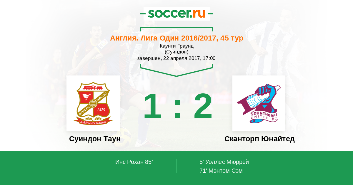 Протокол матча Суиндон Таун против Сканторп Юнайтед