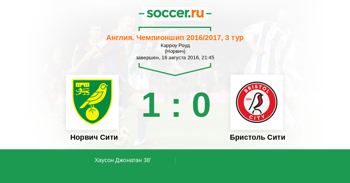 Протокол матча Норвич Сити против Бристоль Сити