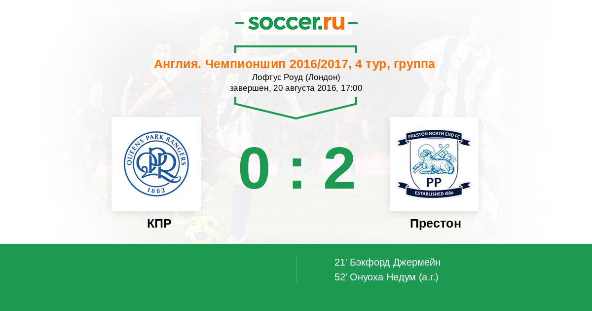 21' (0:1) Бэкфорд Джермейн (10) (Галлахер Пол (12))