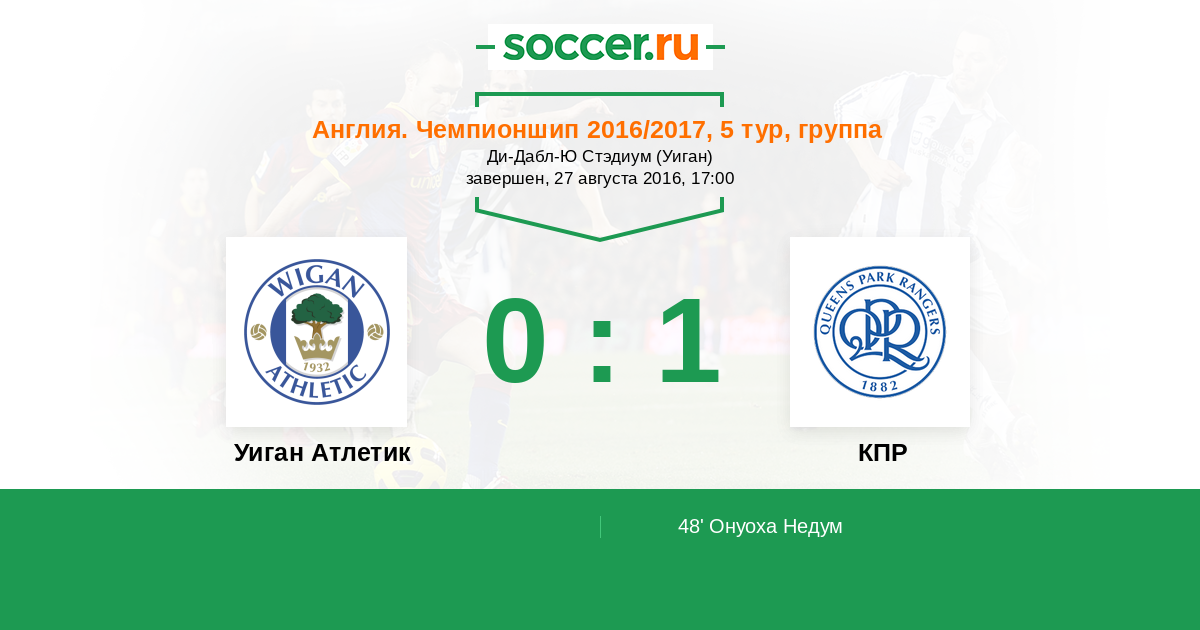 Протокол матча Уиган Атлетик против КПР