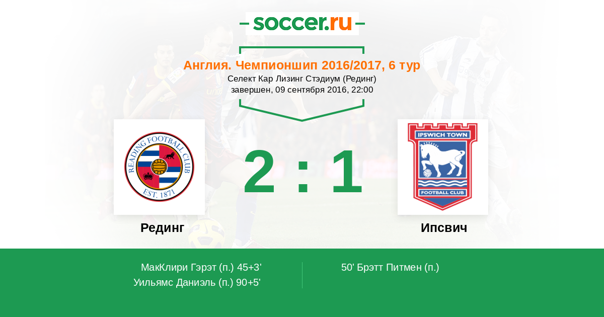 Протокол матча Рединг против Ипсвич