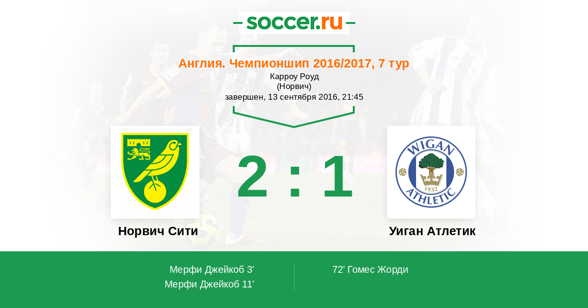 Протокол матча Норвич Сити против Уиган Атлетик