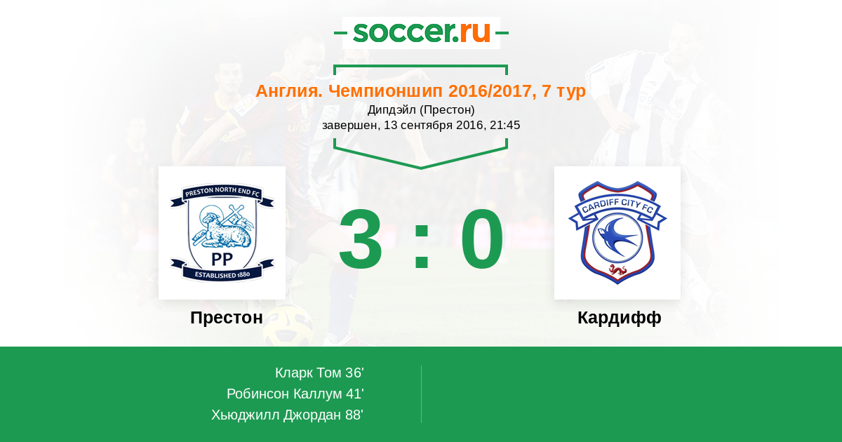 Протокол матча Престон против Кардифф