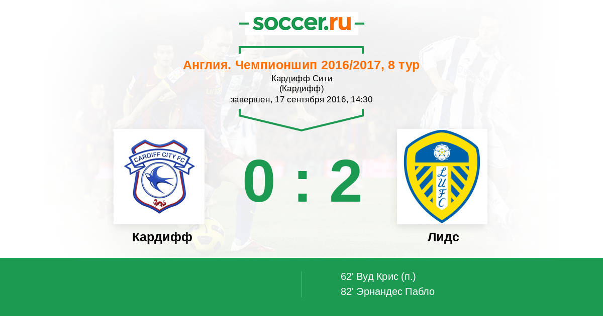 Протокол матча Кардифф против Лидс
