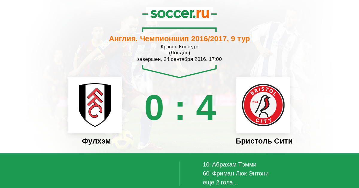 Протокол матча Фулхэм против Бристоль Сити