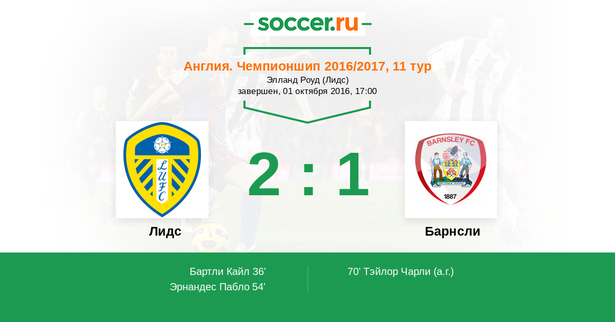 Протокол матча Лидс против Барнсли