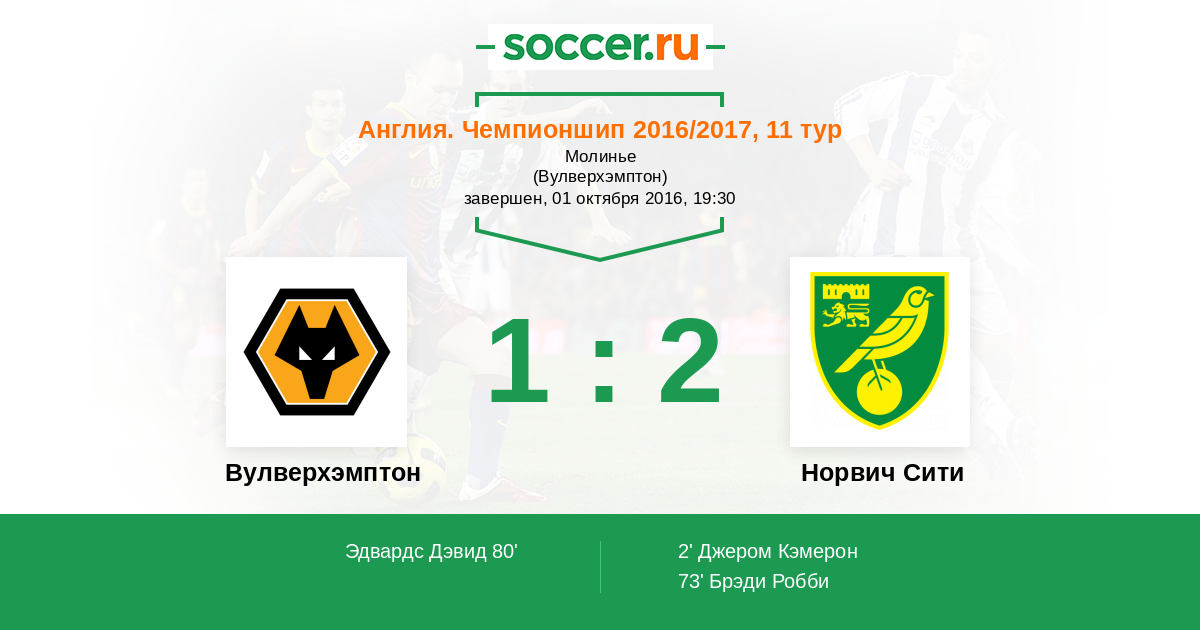 Протокол матча Вулверхэмптон против Норвич Сити