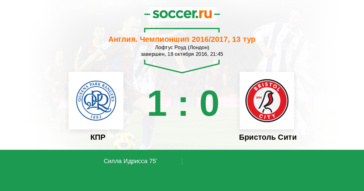 Протокол матча КПР против Бристоль Сити