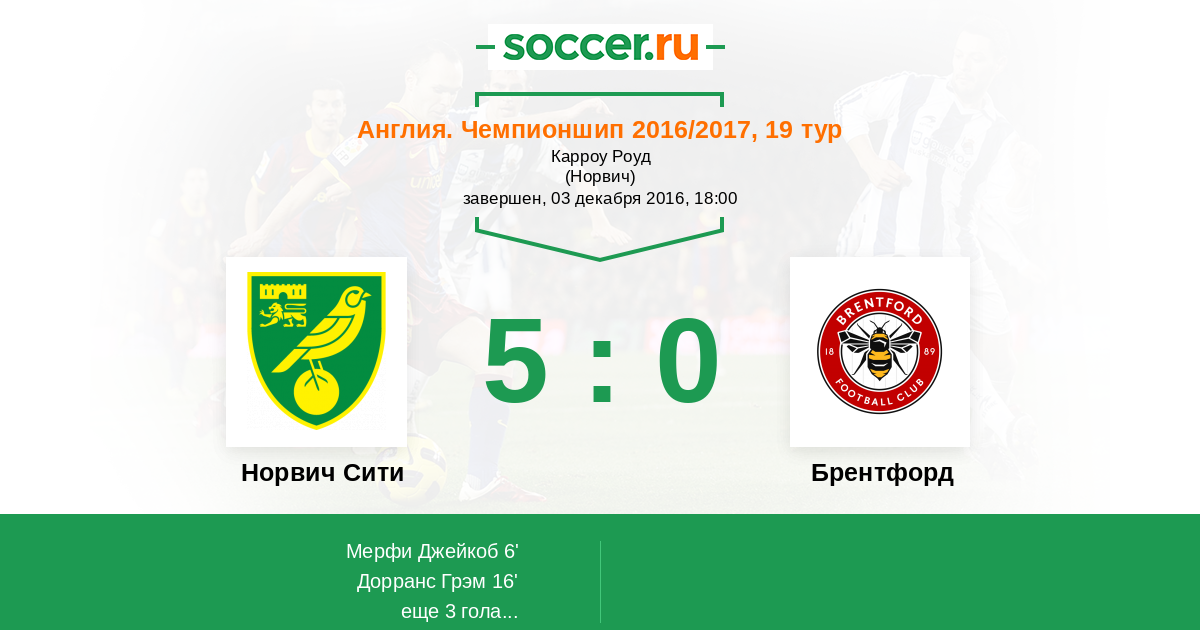 Протокол матча Норвич Сити против Брентфорд