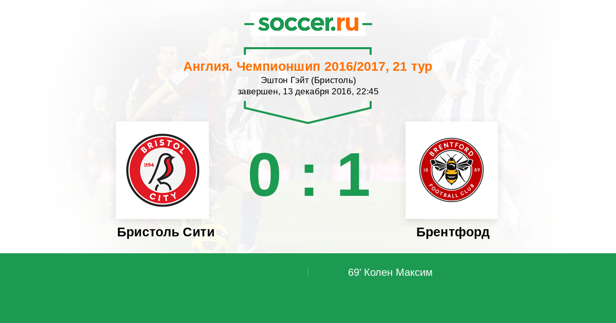 Протокол матча Бристоль Сити против Брентфорд