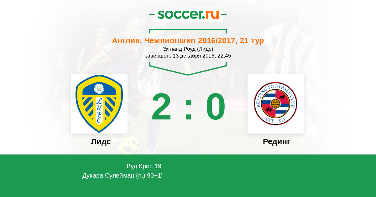 Протокол матча Лидс против Рединг