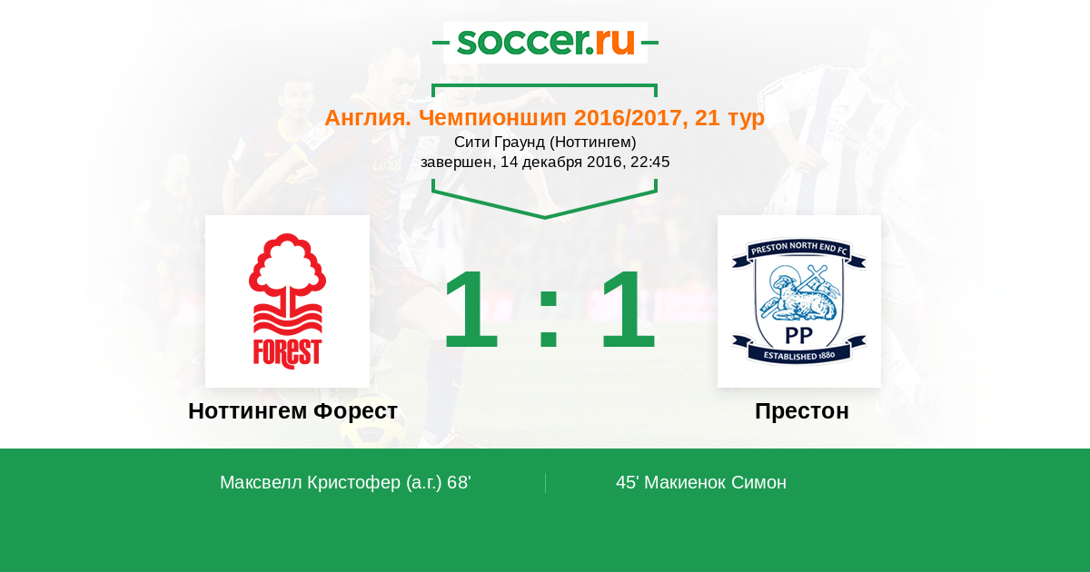 68' (1:1) Автогол Максвелл Кристофер (22)